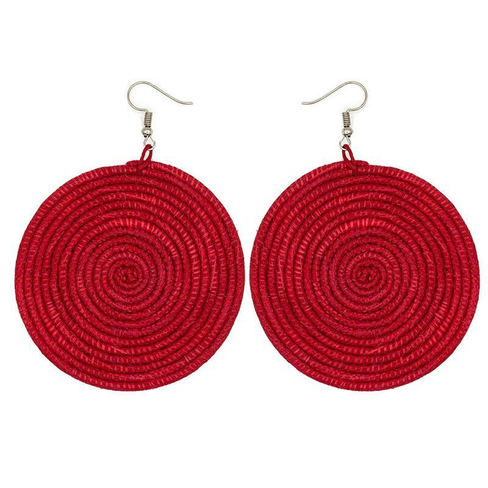 Beautiful light weight disc earrings made from embroidery thread and locally sourced sisal grass.  Handmade by women artisans in Rwanda.
