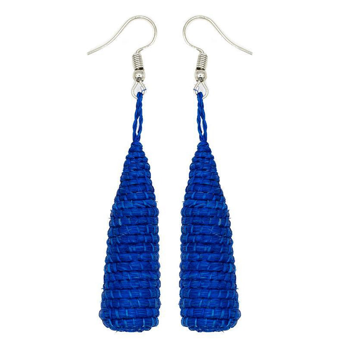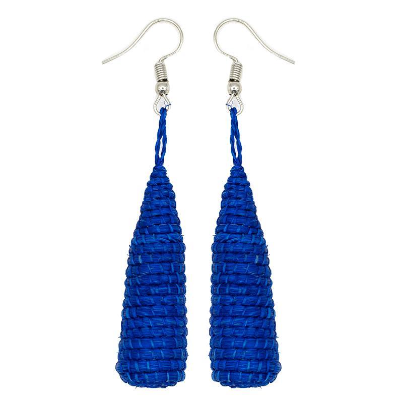 Simple and sweet, these blue embroidery teardrop shaped drop earrings are a great look anytime. Hand made by women artisans in Rwanda.