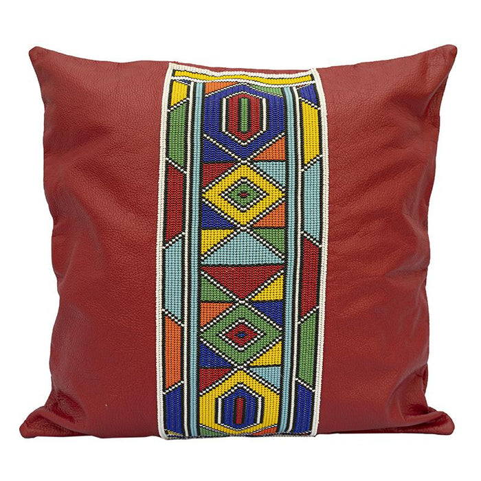 Our authentic beaded leather pillows are made out of genuine leather. The pillow covers are handmade with love in Johannesburg, South Africa by the Ndebele female artisans. Each pillow is unique and takes at least one week to be completed. The Ndebele women use fine glass beads to complete this one of a kind beading! These unique pillows will stand out in any space.