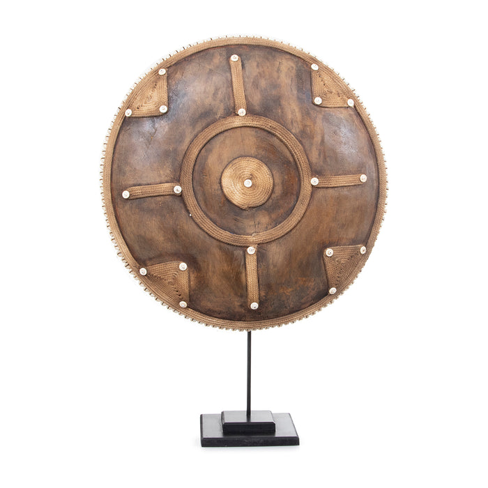 Wooden Natural Cameroon Shield on stand | Manilla Panel Design with Cowrie Edge