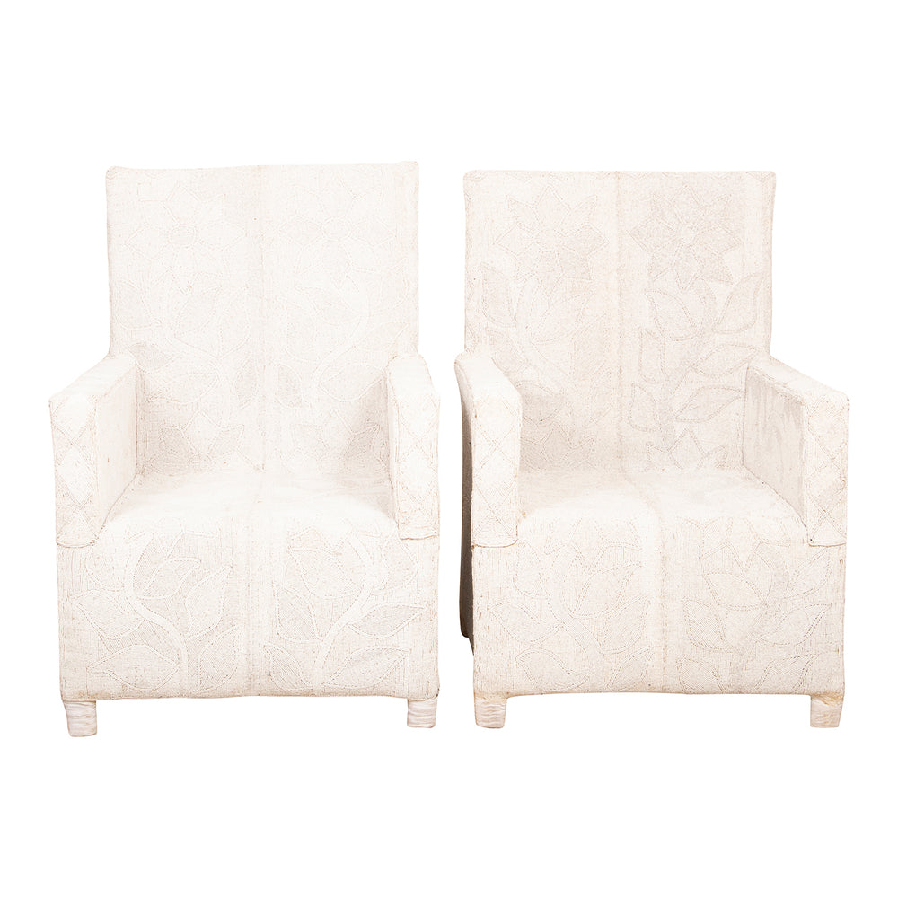Each chair takes over 4 months to make. These authentic chairs are traditional chairs used by kings & queens from the Yoruba tribe. Sold as a set of two.