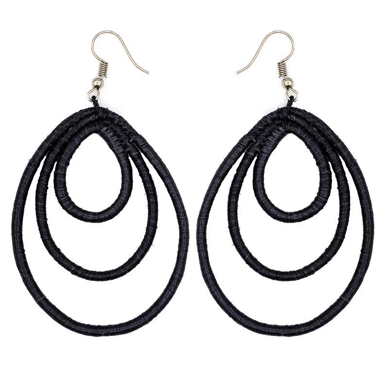 Beautiful light weight tear drop earrings made from embroidery thread and locally sourced sisal grass.  Handmade by women artisans in Rwanda.