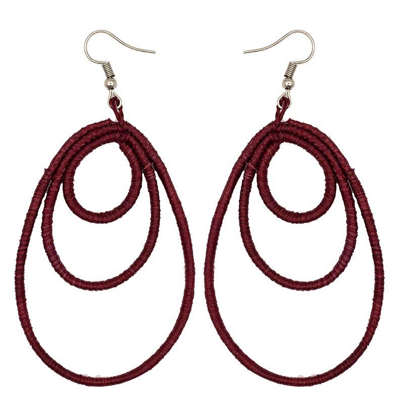 Beautiful light weight tear drop earrings made from embroidery thread and locally sourced sisal grass. Handmade by women artisans in Rwanda.