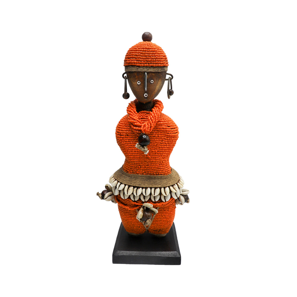 Namji dolls are adorned with glass bead necklaces, cowrie shells, metal strips and fiber; stands on a wood base.  They are carved from solid pine hardwood.  We carry an extensive variety of styles, sizes and colors in our collection and each Namji doll is an “original” work of art.  They are individually handmade making them unique and a one of a kind piece.