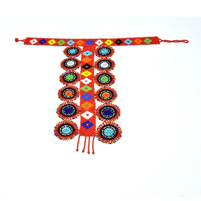 Enhance your style with our beautiful Chi Long Beaded Necklace in red. Handmade by the Maasai women from Tanzania out of glass beads, it takes two days to make this intricate necklace.