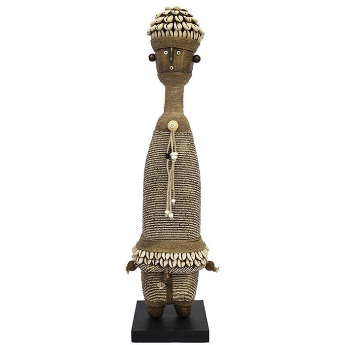 Namji dolls are adorned with glass bead necklaces, cowrie shells, metal strips and fiber; stands on a wood base.  They are carved from solid pine hardwood.  We carry an extensive variety of styles, sizes and colors in our collection and each Namji doll is an “original” work of art.  They are individually handmade making them unique and a one of a kind piece.