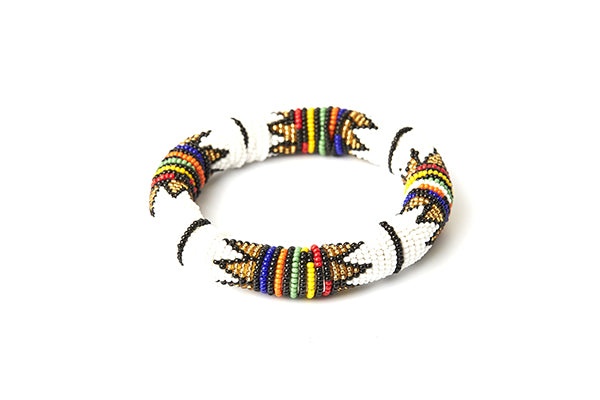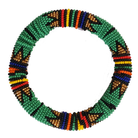 Our bangles are created entirely by hand and variations in design may occur.  Each piece tells a story.  Beaded jewelry is part of the Zulu identity and through our collection, we tell their stories and preserve the traditions of this unique tribe.
