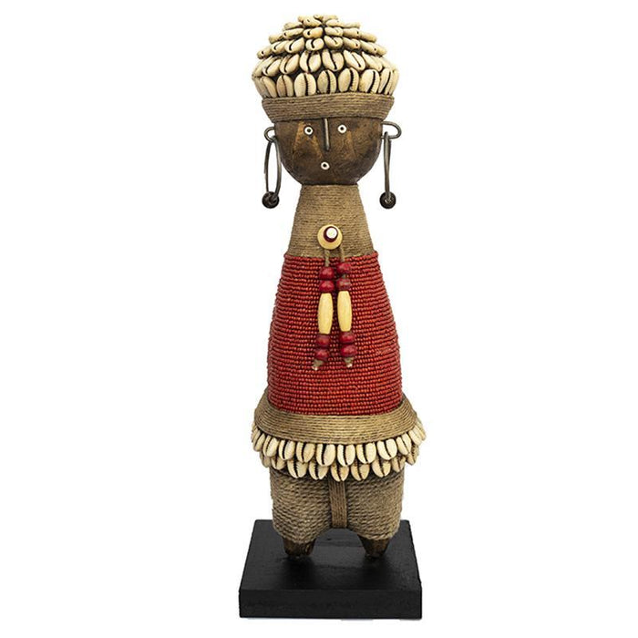 Namji dolls are adorned with glass bead necklaces, cowrie shells, metal strips and fiber; stands on a wood base.  They are carved from solid pine hardwood.  We carry an extensive variety of styles, sizes and colors in our collection and each Namji doll is an “original” work of art.  They are individually handmade making them unique and a one of a kind piece.