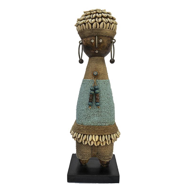 Namji dolls are adorned with glass bead necklaces, cowrie shells, metal strips and fiber; stands on a wood base.  They are carved from solid pine hardwood.  We carry an extensive variety of styles, sizes and colors in our collection and each Namji doll is an “original” work of art.  They are individually handmade making them unique and a one of a kind piece.