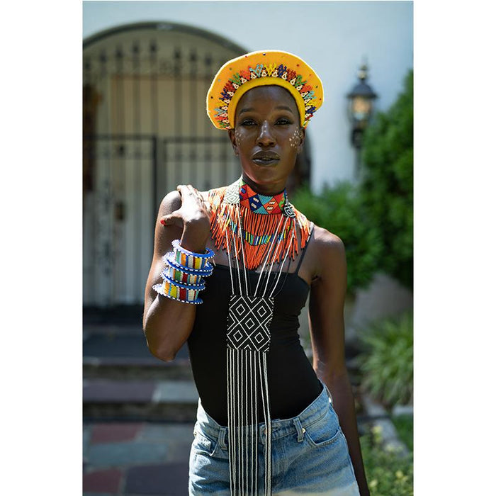 Our beautiful Beaded Beret in yellow is the perfect accessory to dress up any outfit. This beret is made in South Africa by Lambert using 100% South African wool, with bead work that is hand sewn by Ndebele women.