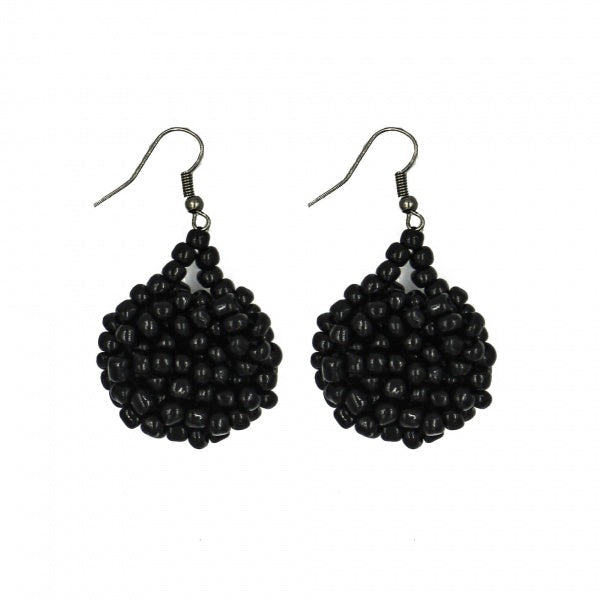 Elegant drop earrings made from black beads. Handmade by Rwanda women. These earrings do match some of our necklaces we carry. These classic timeless light weight statement earrings can be worn at any occasion.