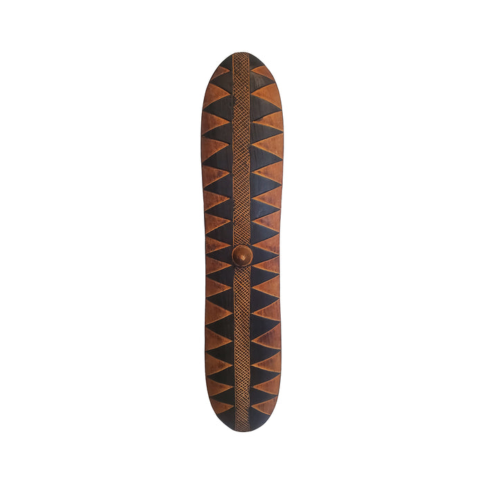Handmade by Tutsi artisans in Rwanda. This authentic wooden designed elliptical shields are carried by the Tutsi Warrior from Rwanda.