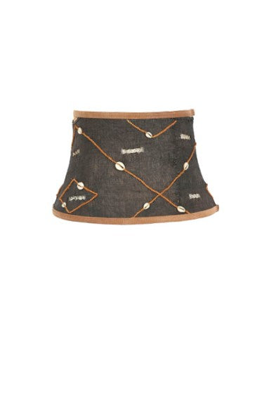 Kuba Textile Lampshade fully lined measures 14" W x 9" H.